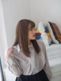 ツヤ感のあるさらさらストレート。ベースは緩やかな前上がりにカット。ノンレイヤーでも毛先がまとまりやすくなるようにカットしました。カラーは毛が重なっても透明感がでるようにベージュに☆明るめカラーならアッシュもおすすめ☆