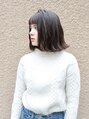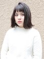 シンプルなパツッとボブhair眉上の前髪がポイント。毛先はパツッとブラント感を残して、フランス映画の様な雰囲気のボブhairです。カラーは、深く透けるビターなショコラブラウンで、深くも透明感あるカラーです。
