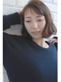 切りっぱなしのボブにパーマをかけ、明るすぎない8トーンのピンクベージュでこなれ感アップ!