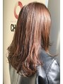 顔まわりの外ハネが可愛いミディアムスタイル。カラーはバイオレット系カラーでツヤ感アップ。