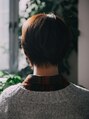 ショートボブにカットしているので襟足はタイトにすっきりと収めつつ、サイドには少し長さを残し気味にすることでボーイッシュすぎない女性的なシルエットにしてあります。前髪は流しバングやショートバングでも似合わせ可能です!【稲毛】