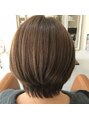 10LVのフォギーベージュカラーの前下がりショートボブ。