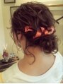 リボンを編み込んだライブ用のヘアセットです^ ^ルーズな外国人風透け感のあるシニヨンです♪