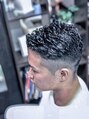 サイド3ミリからグラデーションを付けたクリロナ風・ハイフェードスタイル。分け目もパキっとラインを付けました。1分スタイリングOK!!後頭部もハイウエイトで作ったフェードスタイル・ウエット仕上げでパーマの質感も綺麗に見えます♪