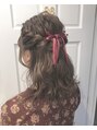 結婚式、パーティー、女子会にハーフアップアレンジ。ツイストと波巻きをミックスしました。リボンでさらにおしゃれ度アップしました。 [ヘアセット デザインカラー 代官山 渋谷 中目黒 恵比寿]