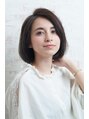 小顔になれる色っぽ、ボブスタイル。動きの出るようにトップにはローレイヤー。前髪は流してスウィートな表情に!カラーはグレージュで美髪なスタイルに! ローライトもプラスして立体感を出します!