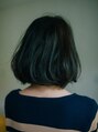 肩上でカットしたベーシックなボブ。適度に毛量調節をしているのでワンレングスでも重すぎないまとまりやすいスタイルに仕上げています☆落ち着いたブルーアッシュカラーで可愛すぎずクールな印象に☆目上で流れるようにカットした前髪は目力効果◎