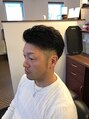 サイドは2ブロック、裾は刈り上げ、0,5ミリで刈りました。アイロンパーマでナチュラルにバックに流してます(^^♪