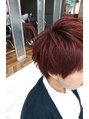 インパクトのあるレッドカラーに立体感を加えるハイライトを施し、束感のある仕上がりにしました。