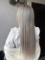 【ベース】12トーンくらいのセミブリーチ毛、毛先の軽いミディアムレングス【施術メニュー】カラー・オッジィオットトリートメント・編み込みエクステ60本