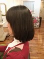 【お客様スタイルです】少し長めのボブにカット内側の毛を表面より短く切ることで自然と丸みが出るように切っています顔回りはかぶして切ってる分重くなりすぎないように前上がりに。削ぎとスライドカットで毛量調整しまとまりやすいスタイルに。