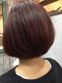 大人かわいくレッド系で決めたアシンメトリーな前下がりボブ♪