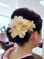 ご友人の結婚式に参列されるため、着付とヘアセットで来店されました♪シンプルですがロープ編みや三つ編みなどをいれ可愛いらしい感じに仕上げました。