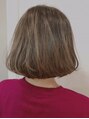 ハイライトを全体に入れたアッシュカラー。ワンカールのスタイリングでもゆるく巻いてもハイライトが出てくれるからスタイリングの幅が増えて長い目で楽しめるカラーです。その都度カラーをするだけで色の差ができるから毎回いろんなカラーも楽しめます。