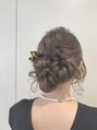 おくれ毛と低めシニヨンがポイント。決めすぎないように質感はルーズに調整しています。