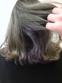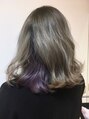 全体ブリーチをしてから、更にインナー部分をもう1度ブリーチ!表面はグレージュベースでインナーはラベンダーアッシュ系のパープルをオン♪