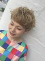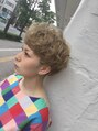 ハイトーンのスタイルも、ベリーショートとナチュラルカールで可愛く、カジュアルに♪ あえてのショートバングで少年のようなカジュアルさを柔らかな丸いフォルムで女性らしさを表現力しました!!ゴールドベースのカラーでより、外人風に♪