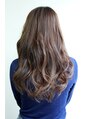 大人っぽいガーリーなロングのウェーブスタイルです。アイロンのミックス巻きで重ならない強めにランダムな毛流れをつくっています。内巻きと外巻きを繰り返して巻いてラフさを出しています。動きが出るよう全体は軽いスタイルに。