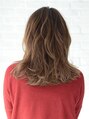 全体的にセミウェットに仕上げたセミディ。前髪はセンターパートでS字カールで小顔ヘアに。計算された無造作ヘアでこなれ感と大人っぽい色気をプラスしたスタイル。