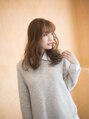重めなAラインシルエットで作るパーマスタイル。明るめベージュカラーで透明感がでるので重くなりすぎないです。無造作な外国人風のクセ感風なパーマモテセミロングです。前髪はフルバングで奥行き広めにとって小顔効果に☆