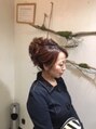 この日はファーのオフショルダードレスをお召しになられるとのことでしたのでファーのボリューム感に負けないくらいに高さ、ボリュームを出してみました。
