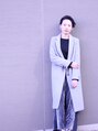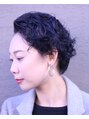 暗めのブルーアッシュで染め、ウエットでオールバック風にセットしたハンサムモードな女性です。