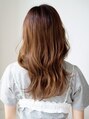 ツヤ感のあるグラデーションカラーが特徴的な、ミックスカールスタイルです。かきあげた前髪がより躍動感を出してくれます。