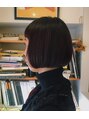 深い色味のレッドカラー♪光に当たると色が分かります☆しっかり色味を入れているので色持ちもいいです!ミニボブはスタイリングが簡単なのでオススメです。