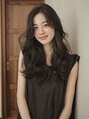 ワンサイド タンバルモリ セミウェット スポンテニアス グレージュ ノームコア 黒髪 大人かわいい 伸ばしかけ センターパート グラデーションカラー 小顔 ふわミディ 耳かけ 前下がり ボブ 無造作 くせ毛風 クラシカル フェミニン ルーズ 外ハネ