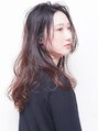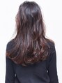 全体は艶が出るように、カラートリートメントとカラー剤をミックスしてアッシュブラウンに。ロングのため、それを活かして大人の女性の中でもキャリアウーマンっぽさのあるかきあげバングで、スタイリング。かっこよさと女性らしさがミックスそたスタイルです