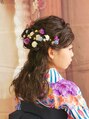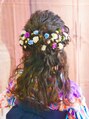 ふんわりウェーブのシンプルなハーフアップに小花の髪飾りをたくさんつけて可愛く仕上がっています♪大学生・専門学生さんにもおススメです♪