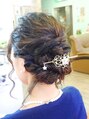 今一番人気のスタイルです☆彡真ん中はクルリンパではなくフィッシュボーンで編んでセットしています!とっても素敵な髪飾りをご持参いただきました♪