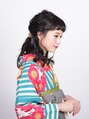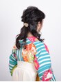 可愛い波ウェーブのハーフアップスタイル。クロス編みでまとめた立体的なアップが美しく、大正ロマンのハイカラな雰囲気を現代に蘇らせてくれます。