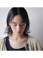 センターパートで、あえてコンパクトな雰囲気で作るミディアムスタイル。毛先にワンカールくらいのパーマが抜け感を演出します。ファッション的に、モード/ストリート/古着系(大きく言うと青文字系の方にオススメです)
