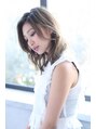 大人かわいいミルクティーカラーのミディアム。メルトカラーやイノセントカラーとの相性も◎斜めバングでうぶバングを演出。短過ぎないシースルーが大人っぽいです。伸ばしかけの方はエアウェーブやデジタルパーマがオススメです。パーマで小顔に変身♪