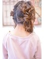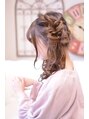 編みこみローツインテールにポイントでリボンをつくりました!11トーンのヘーゼルベージュでナチュラルな透明感のある色味にしています!ヘアアレンジは後ろが可愛いものが多いですが、僕は前からや横から見た時に可愛いアレンジにしています!