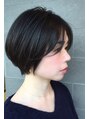 メリハリをつけすぎないフラットな形のセンターパートショートボブです。短くても女性らしい丸い形で、耳にかけるとショートぽくかけないとボブっぽく、それだけでアレンジできる2wayスタイルです!アッシュブラックでオシャレな暗髪でイメチェン!