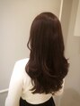 7トーンくらいのラベンダーピンクグレージュカラーです。重めのローレイヤースタイルで巻いたときの厚みのあるカールが出やすいところがポイントです。