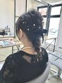 ロングヘアーじゃなくても編みおろしできます♪リボンとパールが可愛い!