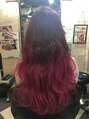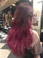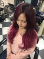 毛先をブリーチしてグラデーションベースに、上の部分は赤茶ベースに上からカラートリートメントを入れて色味を足しました。