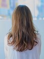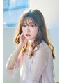緩やかな髪の動きとシースルーバングが特徴なロングウェーブスタイルです。前髪は目にかかるくらいの長さで軽くカットし幼く見えすぎないようにしました。全体にゆるくミックスパーマをかけてふんわりとしたボリューム感に仕上がります