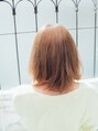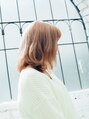 丸いシルエットで柔らかさを出したミディアムスタイル。 バングが重ためにしてある分表面に少しレイヤーを入れて軽さと重たすぎないように透け感をプラスしています♪カラーも透け感のあるベージュで柔らかい印象に♪