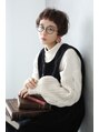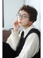 オン眉のラウンドバングが個性的で、カジュアルなマッシュベースのボブにトップからレイヤーを入れて動きを出したスタイル。トップにパーマをかけて、ボリュームと動きを出すとスタイリングも簡単になります。