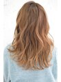 ローレイヤースタイルのセミロングベースです。表面に動きが出るようにローレイヤーをいれ、全体的に量感を減らし前髪は巻いて目にかからないぐらいの長さで設定しました。カラーは先にシアーライツで動きを出し10トーンのモカベージュをON。