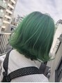 緑好きの子にはたまらない!根元あえて空けての派手カラー!根元を開けると抜け感が出てかわいいです!