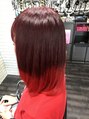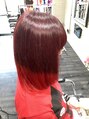 毛先はブリーチをして、上部分はワインレッドに毛先を原色赤にいたしました!