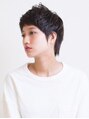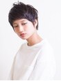 少し青みをおびたダークグレージュで落ち着いた雰囲気のナチュラルショートに。