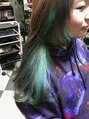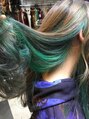ブリーチ2回後、上はアッシュブラウン、インナーにはメッシュでグリーン系を何種類か入れてアレンジをしても楽しめるようにしました☆