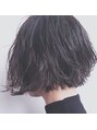 ウエイトを重めに、アゴラインのボブにルーズなくせ毛風のパーマ。サイド3枚ずつハイライトをプラス。全体はアッシュベースのgグレーでニュアンスカラーに。さりげないNOT可愛い大人ボブ。