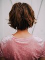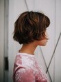 リップラインのワンレングスボブでトップにレイヤーを入れて動きのあるスタイルに!明るめのアプリコットオレンジに染めました!全体的にパーマで動きを出して外ハネメインでカジュアルな雰囲気にしました!